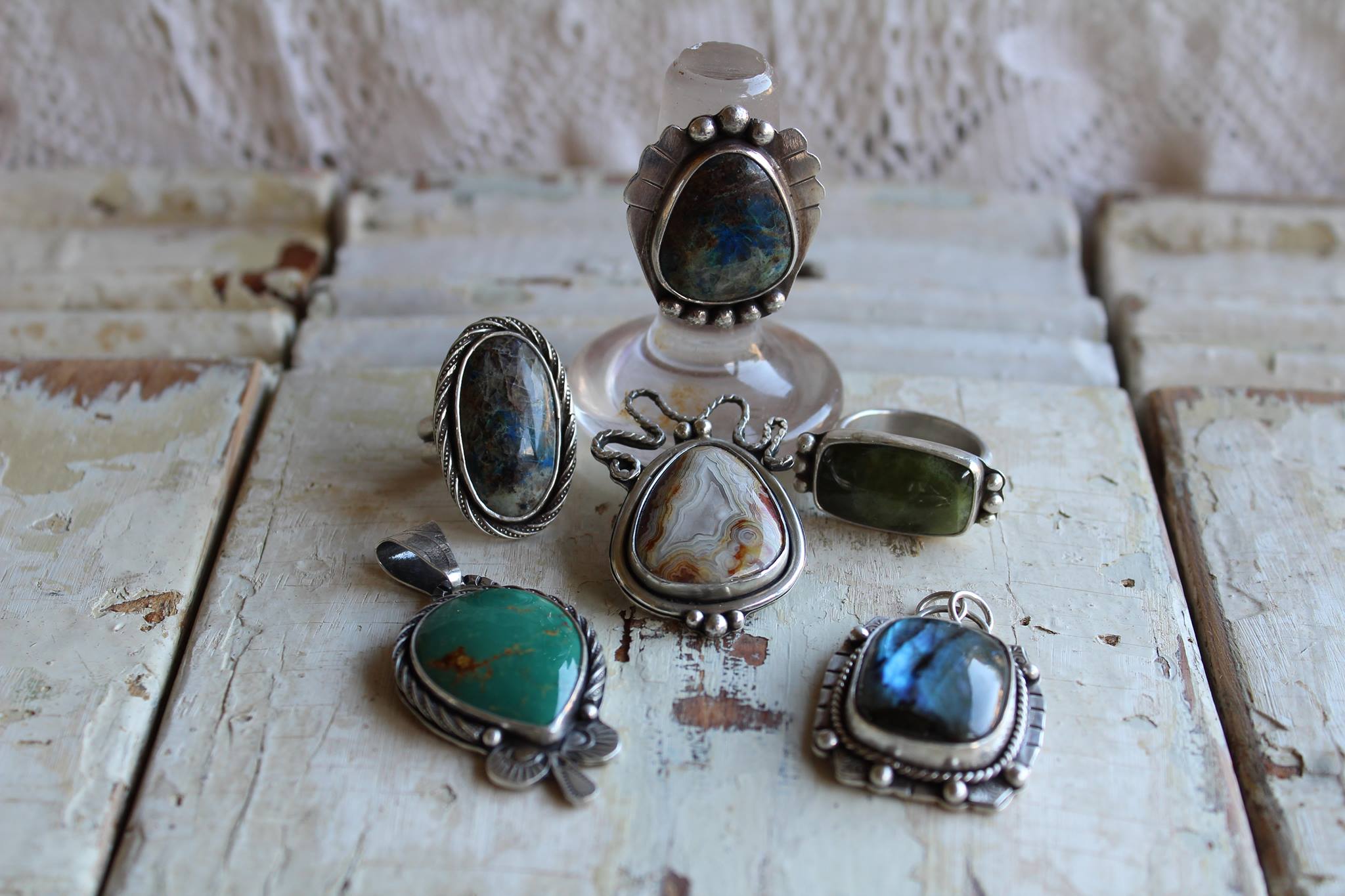 All my custom designs are made in my home studio and crafted using only the highest quality materials. They can be made in gold or silver. I offer a wide variety of pieces, including earrings, rings, necklaces, bracelets, cuffs, and even engagement rings. I take great pride in working with unique stones and using my skills to create one-of-a-kind designs that are truly special.